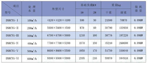 一、DSHCYG型(改进型、第三代)化学除油器是原MHCY化学除油器(第一代有双搅拌机)、MHCYG型(第二代有单搅拌机)的更新换代产品;它具有高效、节能等优点,与第一、第二代化学除油器相比具有以下优点: 1、DSHCYG型(改进型、第三代)化学除油器能将设备沉淀池内积累的泥渣循环流动,与原水中的杂质、油份相互碰撞、接触吸附,充份发挥投加药剂的作用;与前二代化学除油器处理效果相比较,提高了处理效果。 2、运行成本进一步降低:一是由于药剂作用发挥充分,可节省药剂投加量;二是降低了电能消耗,它与前二代化学除油器设备相比,其投加的药剂量可节省50%以上,降低电能消耗在95%以上,大大节约了运行成本。 3、运行稳定、适应性更强:由于设备容积大,且部分污水在设备中回流,增加了药剂在污水中的碰撞及吸附机会,增强了药剂的利用率,加速成了悬浮物及油份的絮凝沉降速度,提高了设备的耐冲击力。 4、管理更为方便。DSHCYG型(改进型、第三代)化学除油器为单斗排泥,排泥更为迅捷彻底;当设计使用单台设备运行时,可以不建泥浆池,用泥浆泵从泥斗中吸泥直接送去压滤,或将沉淀物送回旋流池,节省了后部工序处理投资,且减少了占地面积,更适合老流程的改造。 DSHCYG型系列化学除油器共六种型号 DSHCYG型系列第三代、无动力化学除油器各型号主要参数